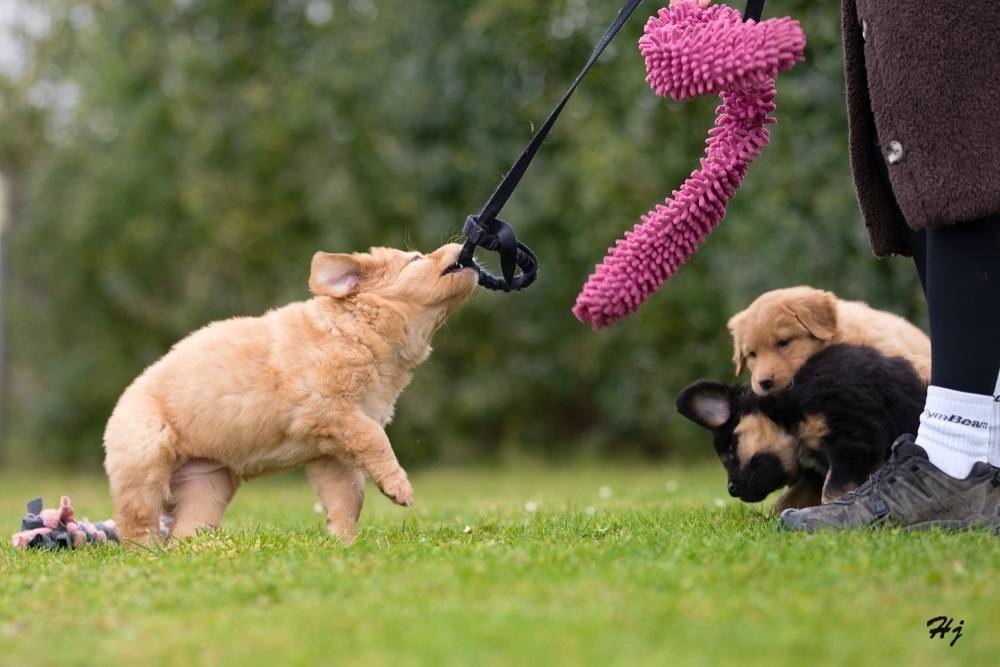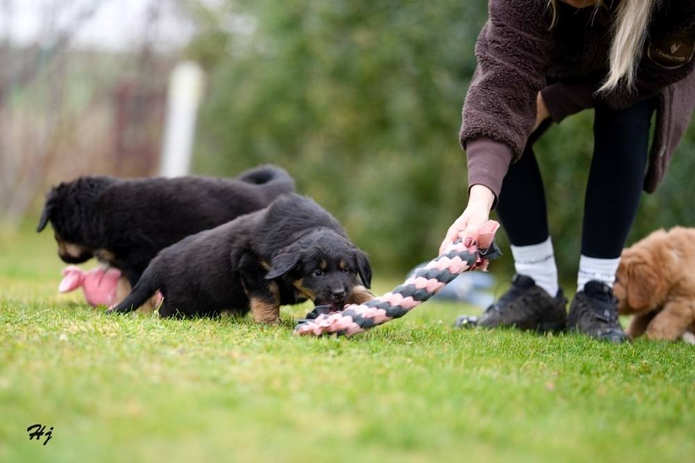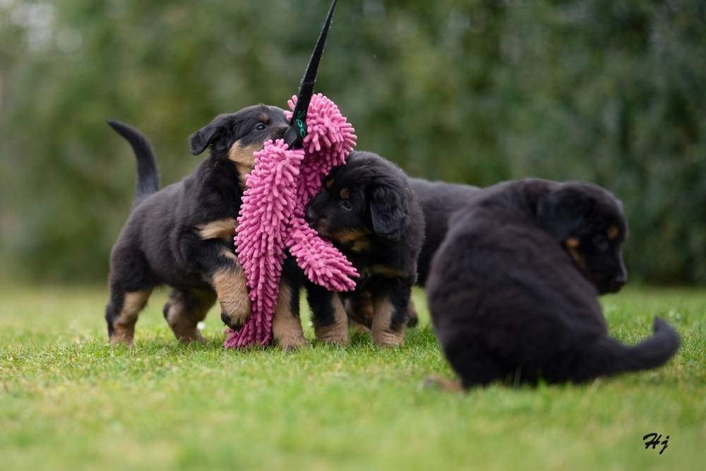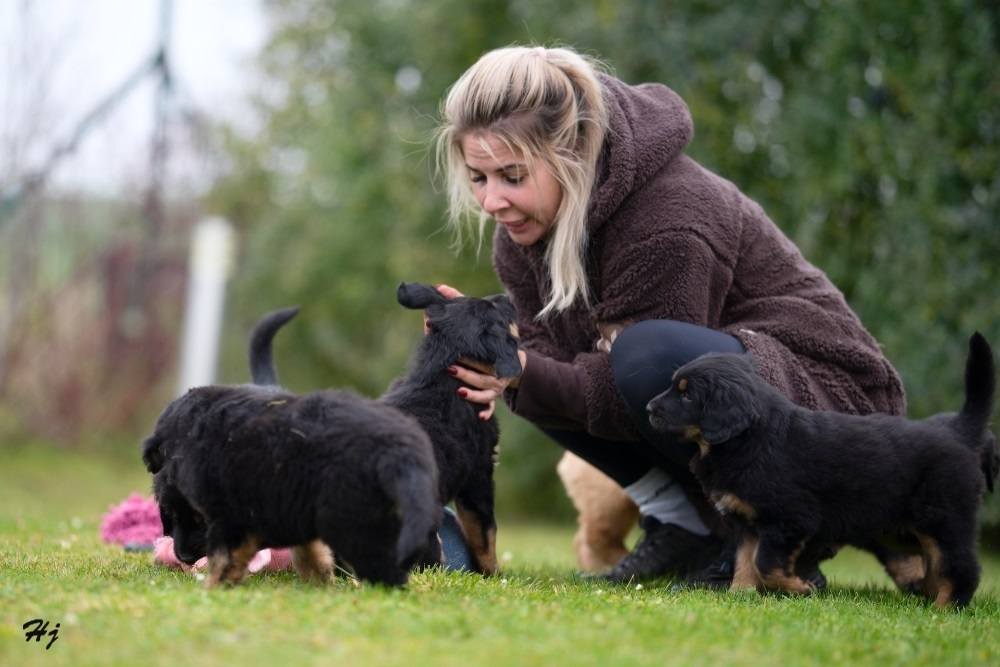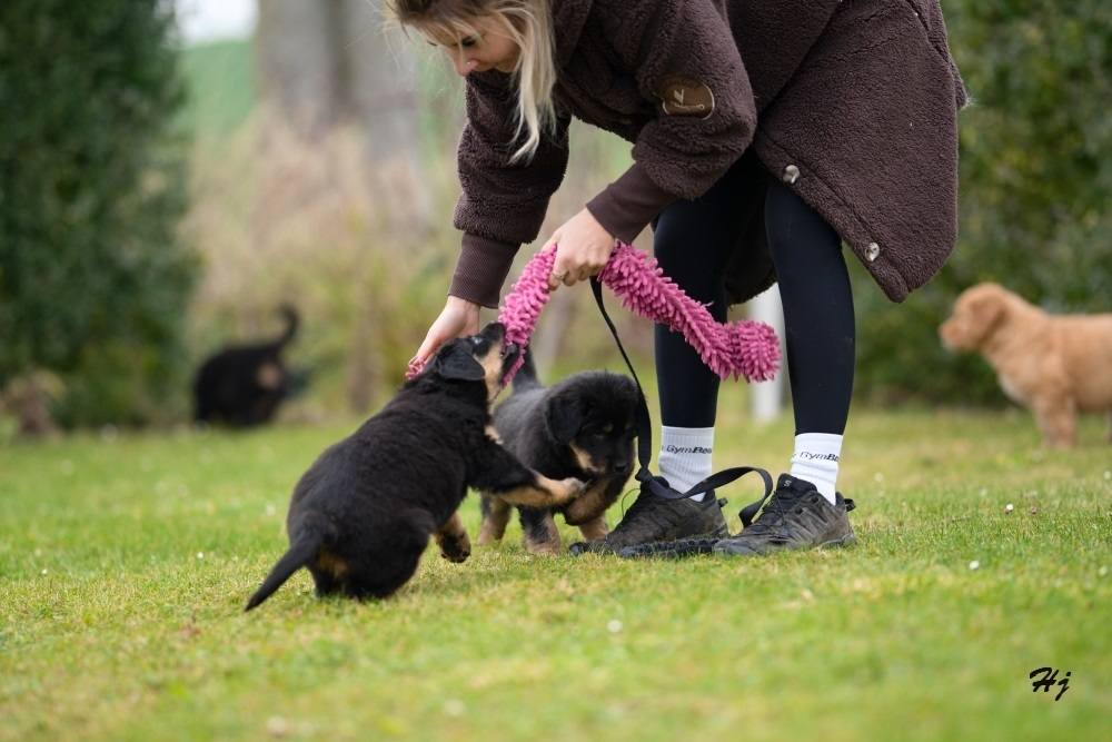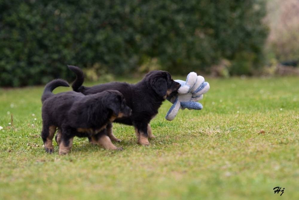 V sobotu jsme měli milou návštěvu. Přijela se na štěňátka podívat majitelka taťky Tina v. d. Jagsthöhe. Dovezla štěňátkům dárečky, vyfotila akční fotky, prohlédla důkladně. Věřím, že je s nimi stejně spokojená jako já.