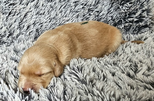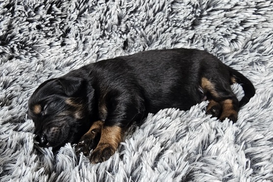Štěňátka krásně přibírají. Všichni mají už otevřená očička a začínají prozkoumávat svět.