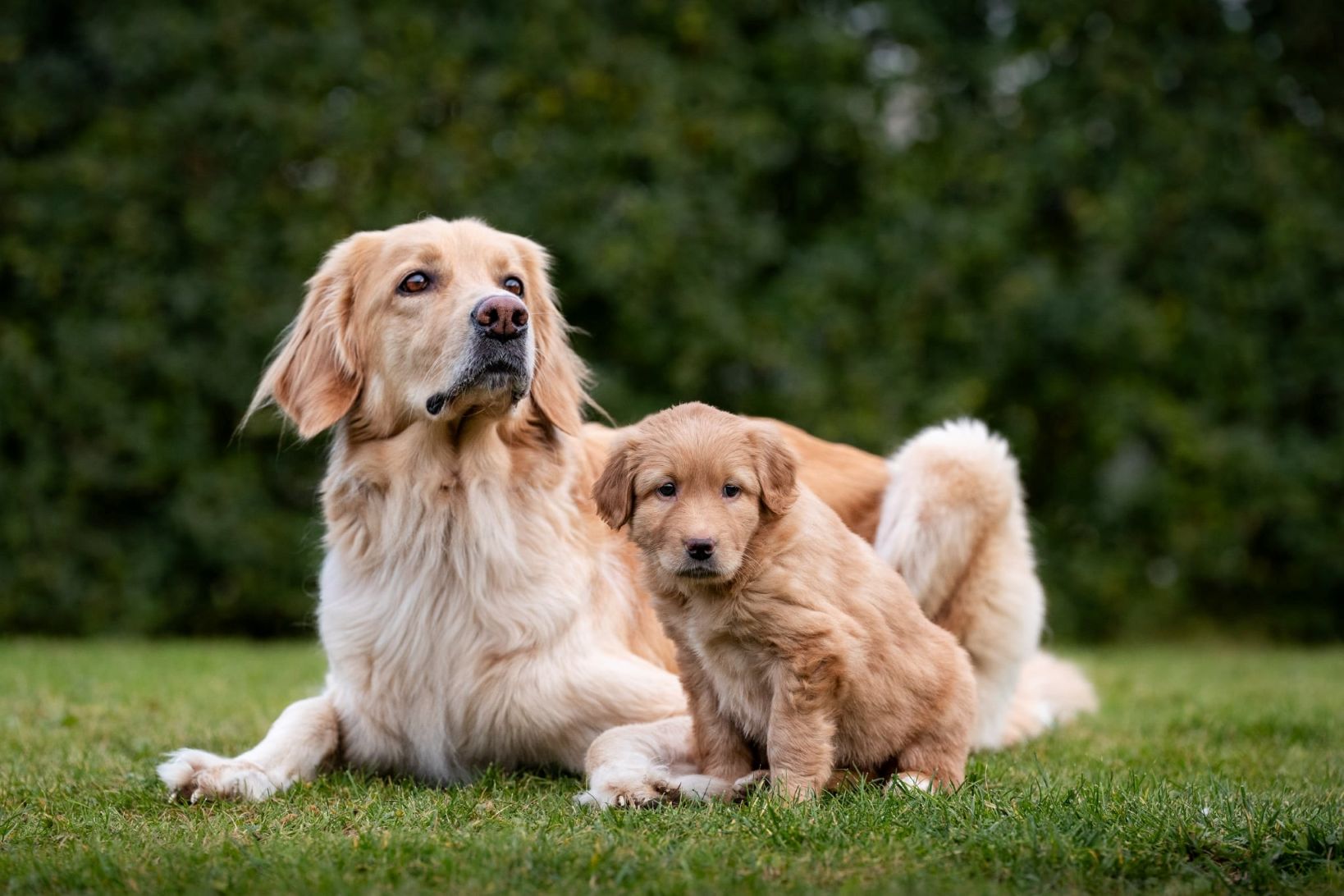Dakule štěńátka už odstavila, ale stále si za nimi chodí hrát, okusovat a odpočívat. Je to opravdu skvělá máma.
